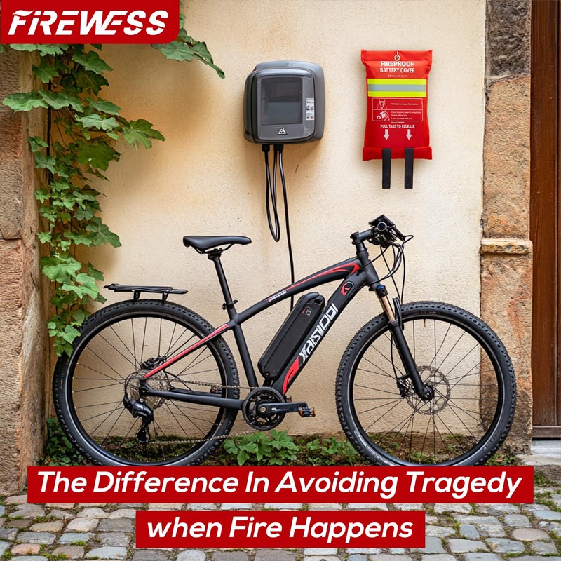 FIREWESS Lipo Battery Fireproof Cover Battery Safe Blanket for Ebike and Esco...