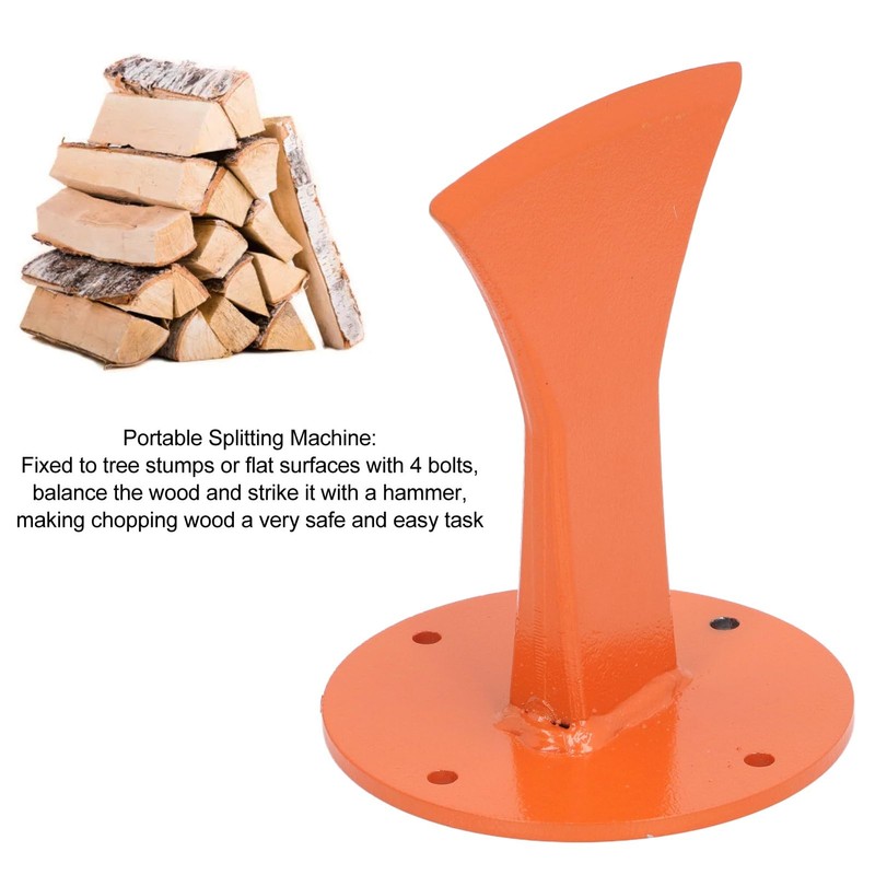 Features: High strength forging for durability. Portable wood chopping tool for safe and easy splitting. Can be securely fixed to tree stumps or flat surfaces. Suitable for fireplaces, stoves, pizza ovens, and campfires.