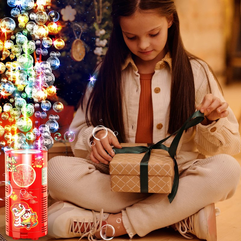 Fireworks Bubble Machine with 80 ml Bubble Solution, Portable Automatic Bubble Machine with Lights and Closeable Music, Bubble Maker Toys for Kids Outside Activities Parties Wedding Christmas