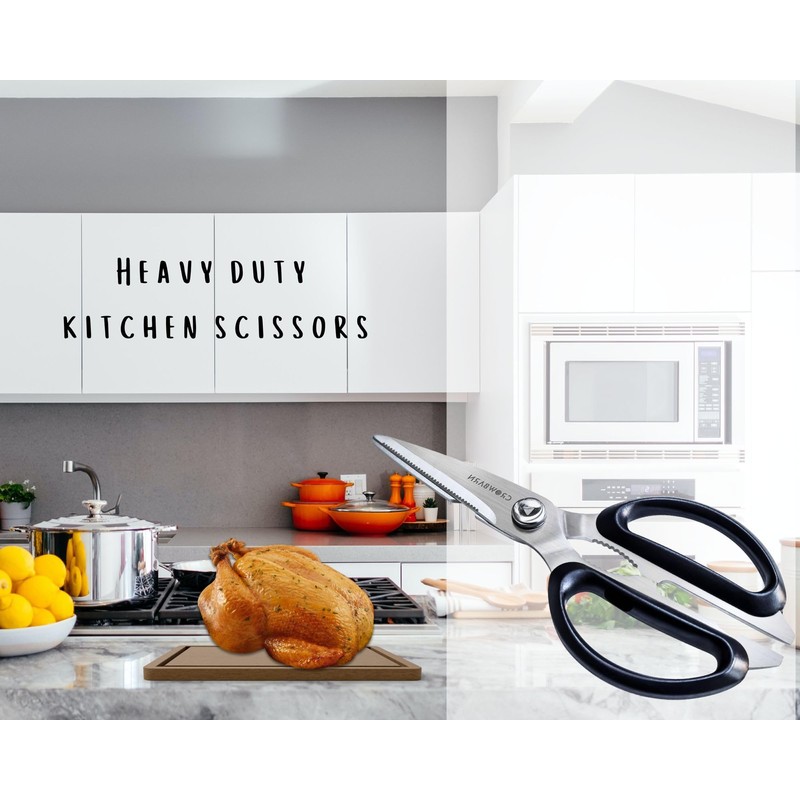 - HEAVY DUTY: Our kitchen scissor is built to withstand the toughest cutting tasks. Made with high-quality stainless steel blades, they provide exceptional durability, sharpness and strength for heavy-duty kitchen use.