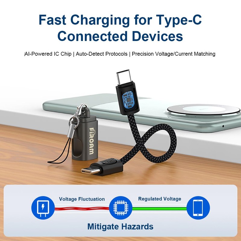- COMPACT DESIGN: Ultra-portable 0.65ft USB-C cable with keychain design for hassle-free carrying and storage, perfect for travel and daily use