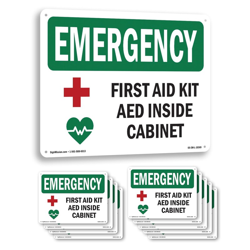 First Aid Kit AED Inside Cabinet With Symbol OSHA Emergency Aluminum Sign 10 Inch x 7 Inch - 10 Pack