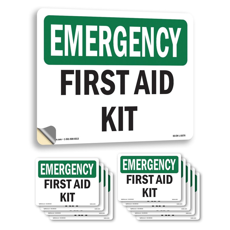 First Aid Kit OSHA Emergency Vinyl Decal Label 10 Inch x 7 Inch - 10 Pack