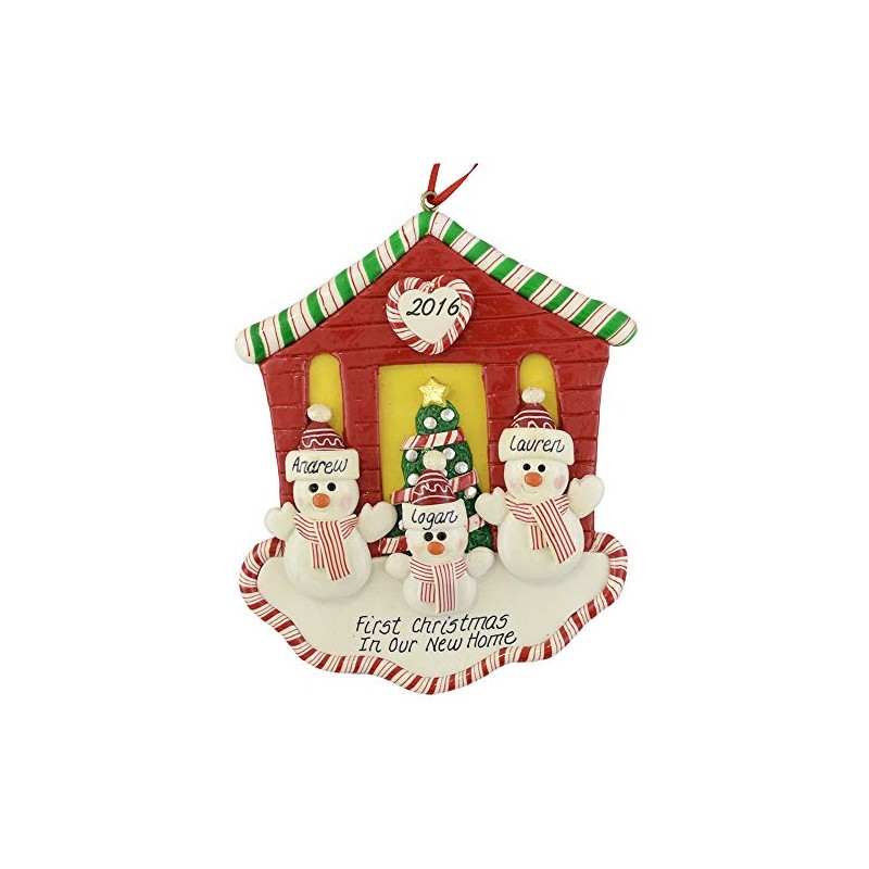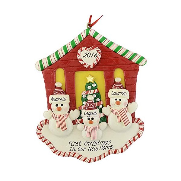 First Christmas in Our New House for Family of 3 Ornament by Calliope Designs - Handcrafted - 4.5" Tall - Free Personalization with Names, Year, a Phrase - A Keepsake for New Homeowners