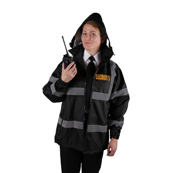 First Class High Visibility Water Resistant Raincoat and Pant With Reflective Stripes (Black/Gold ID, XX-Large)