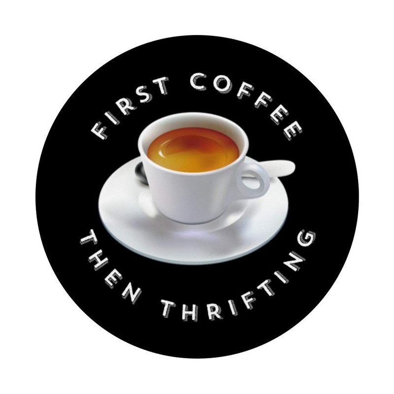 - This thrifting and coffee design in black and white is a unique gift for men, women, friends and family who love estate sales, garage sales, thrift stores and flea markets.