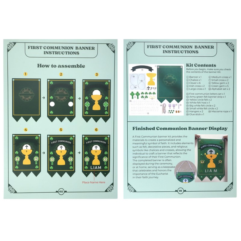 First Communion Felt Banner Kit Irish Catholic, Church and Sunday School Craft Activity with Everything Included, Pew Decoration, 12 x 9 Inches
