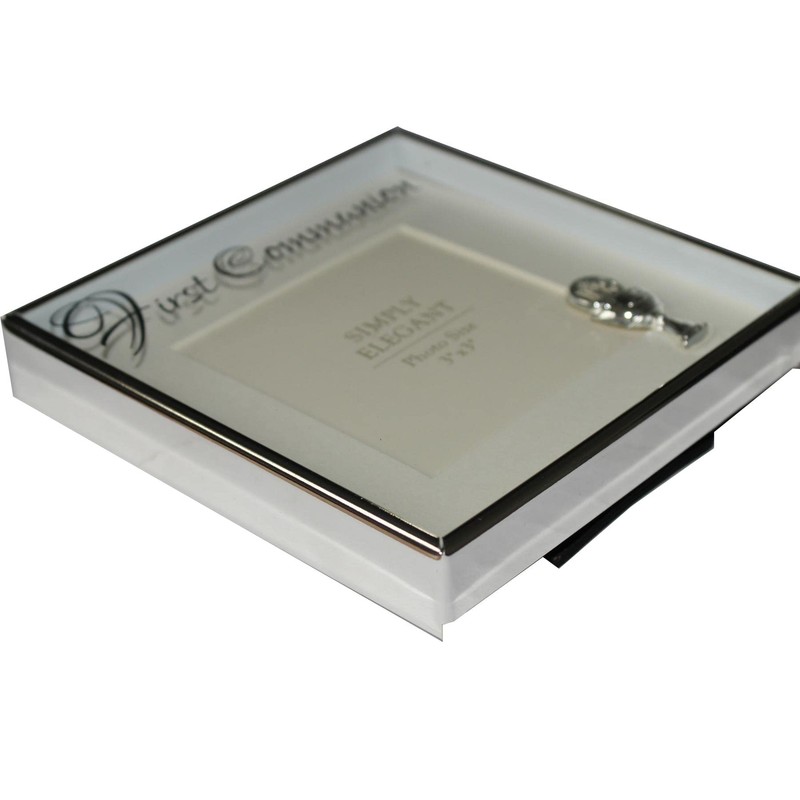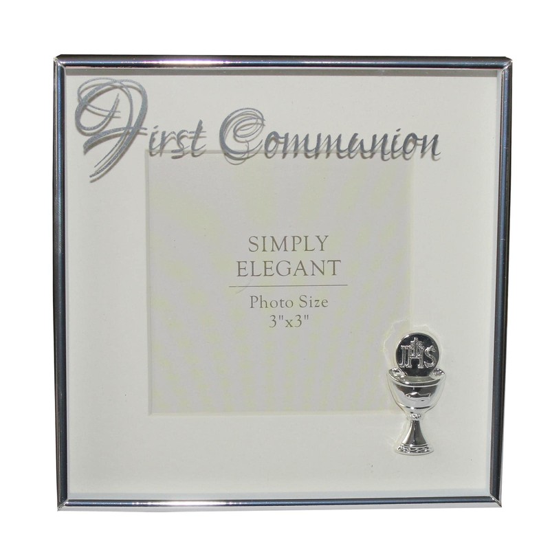 First Communion Silver Photo Frame with Chalice Icon Holds Picture 3'x3' 6108