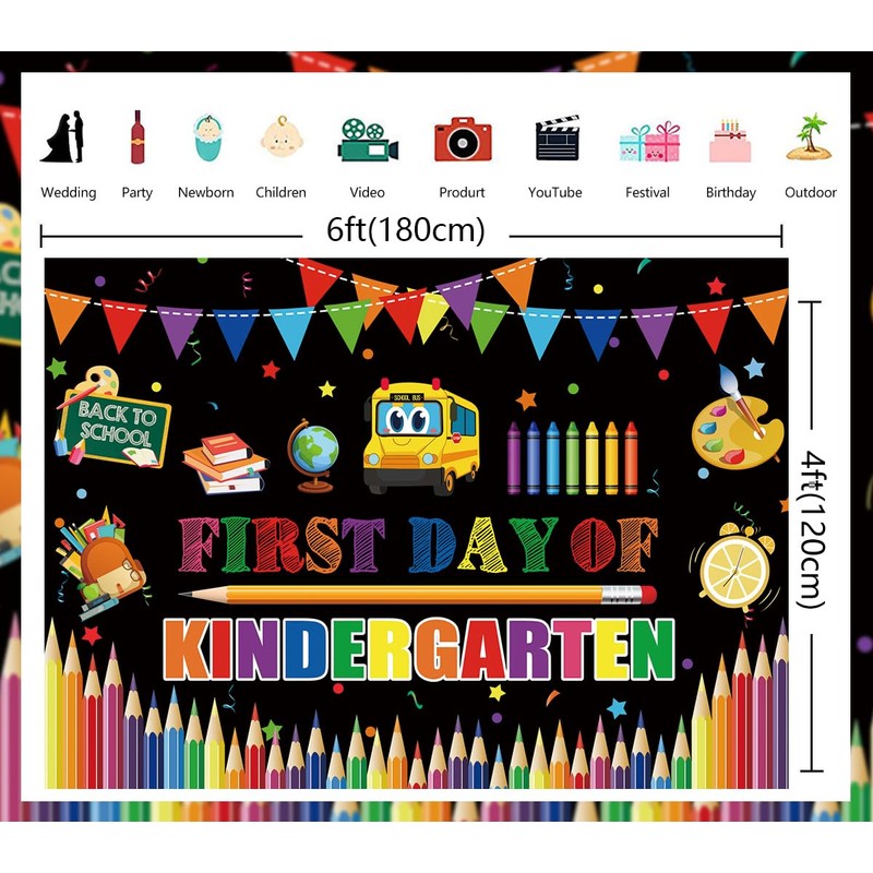 - 【Size】: Our first day of kindergarten themed backdrop is measuring approximately 6 x 4 ft (1.8 x 1.2 m); This backdrop is perfect for creating kindergarten theme party and classroom party decorations kit; Add a special sense of ceremony to the upcoming first day of preschool