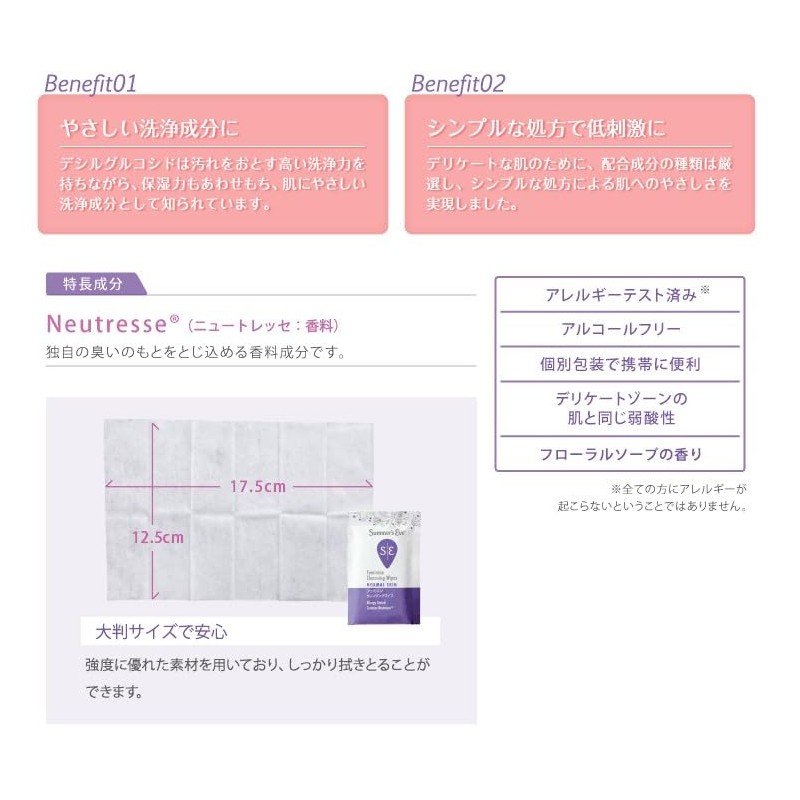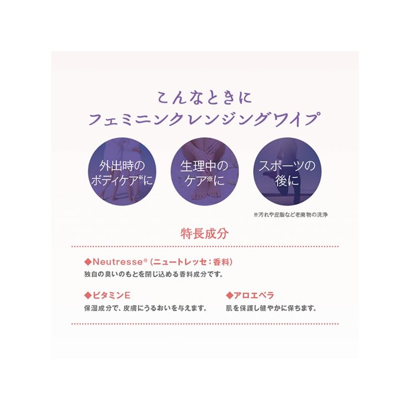 Product Introduction: Please discard the sheet once used without reusing it. Please discontinue use if you are not affected with your skin. Flush one at a time to prevent clogging the toilet. Neutresse formula: A proprietary odor resistant scent formula. Wet type sheet only for delicate zones. Alcohol free, so it is gentle on delicate skin. Gently wipes away the stains in women's delicate zones to reduce sweat odors, while Vitamin E & Aloe Vera keeps skin dry Fresh after the shower! Raw Materials/Composition: Water, octoxinol-9, citric acid, sodium benzoate, fragrance, EDTA-2Na, tocopherol acetate, aloe vera juice, ascorbic acid, potassium sorbate, Sodium sulfite Products, Please do not reuse once-used sheets and throw them away. If the sheet does not agree with your skin, please stop using it stop it one sheet at a time to prevent clotime. gged toilets. Includes Neutresse: a unique odor-eliminating fragrance ingredient. Wet type sheet exclusively for delicate skin. Alcohol-free and gentle to delicate skin. Gently wipes away dirt from women's delicate zones, reduces odors caused by perspiration, and vitamin E & aloe vera protect skin from drying out. Fresh as after a shower! Ingredients/components Water, octoxynol-9, citric acid, sodium benzoate, fragrance, EDTA-2Na, tocopherol acetate, aloe vera juice, ascorbic acid, K sorbate, sodium sulfite