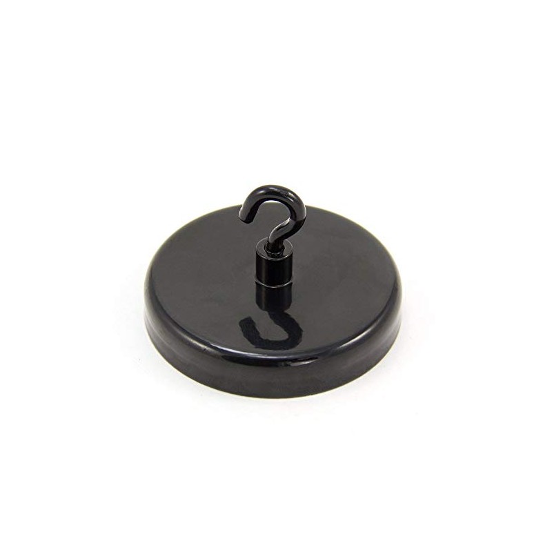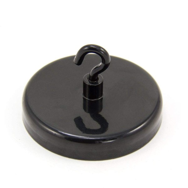 FIRST4MAGNETS Ferrite Black Painted Clamping Magnet with M4 Hook for Hanging, Holding or Displaying Items - 57mm Dia - 25kg Pull