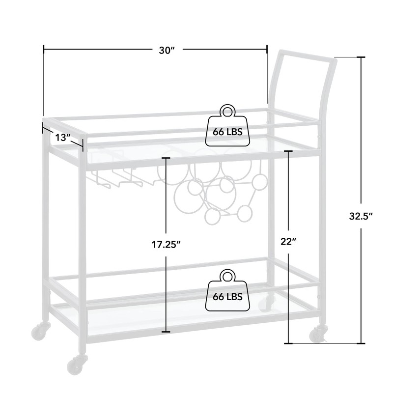 - SIZE MATTERS – Our FirsTime & Co. Black Francesca Bar Cart has a 32.5” height, 30” length and 13” width, giving you enough room to hold your drinks, wine and snacks as well as making it convenient to place in any small space. The height from the floor to the top shelf is 22"
