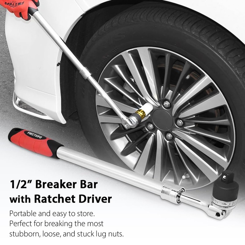 FIRSTINFO 1/2" Drive Extendable Breaker Bar Ratchet Wrench Length 17.2 to 22.7 inches, with Flexible Ratchet Head