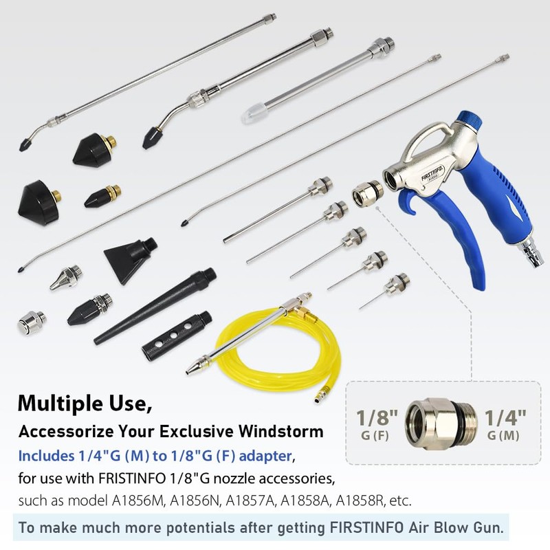 FIRSTINFO A18566 High Flow Windstorm 2X Air Blow Gun, High-Pressure Debris Remover with Extended & Shortest Nozzle + Nozzle Adapter