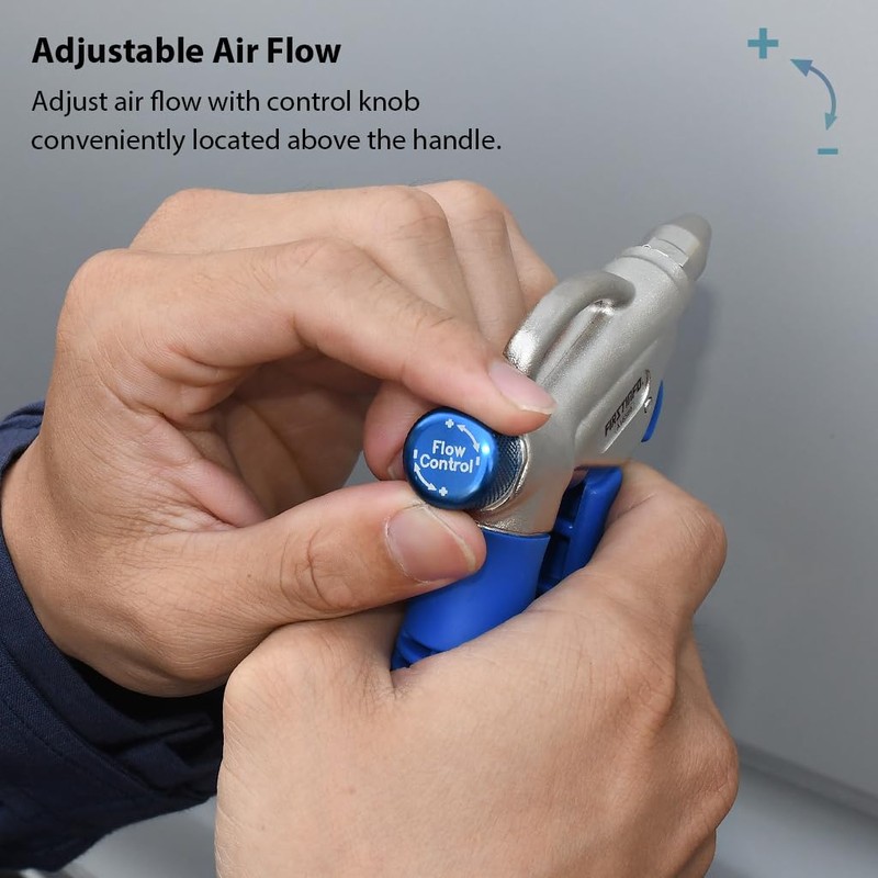 - 【Original Taiwan Design】Control the airflow by turning the flow control knob for easy adjustment of the air stream. Blow dust, stubborn debris, water, and more off of all kinds of materials, machinery, engine compartments, etc..