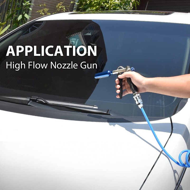 - TAIWAN HIGH PERFORMANCE NOZZLE This nozzle delivers an air flow rate of 1700 L/min at 90 PSI and is ideal for deep cleaning and multiple applications. The recommended operating pressure is between 90 and 150 PSI.