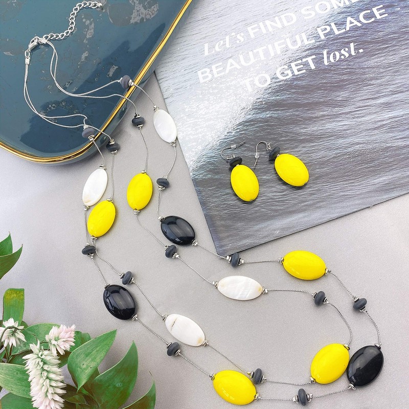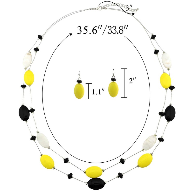 Firstmeet 2 Layer Acrylic Beads Long Statement Necklace With Earrings(XL-1086-yellow)