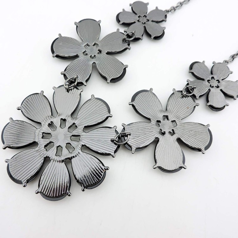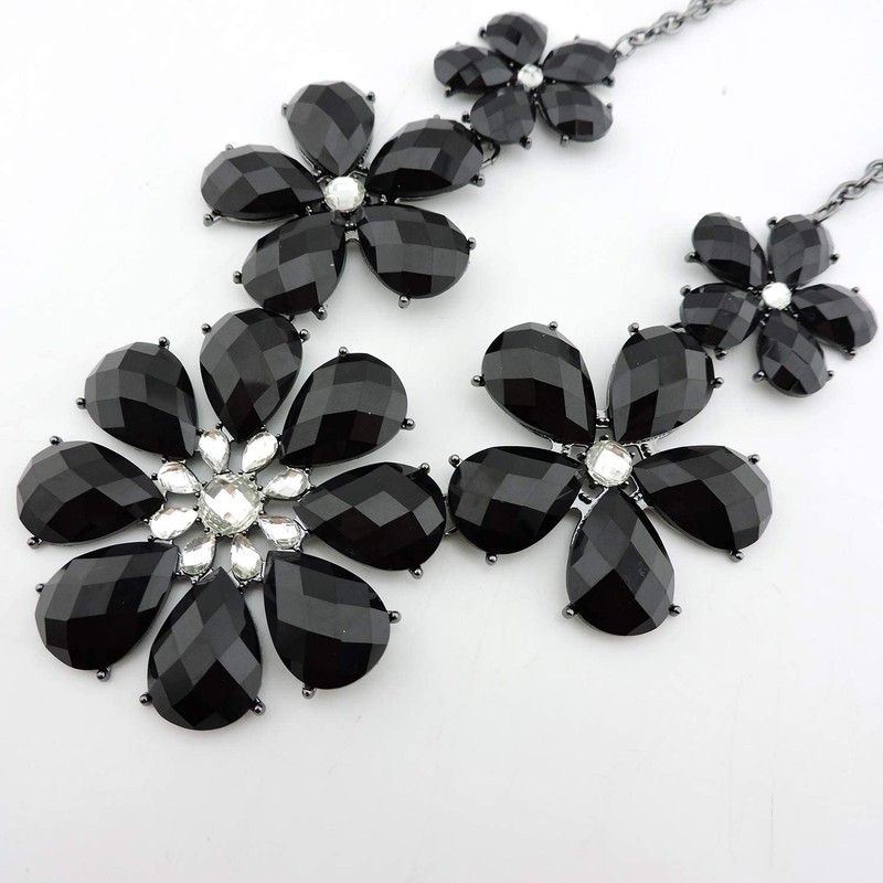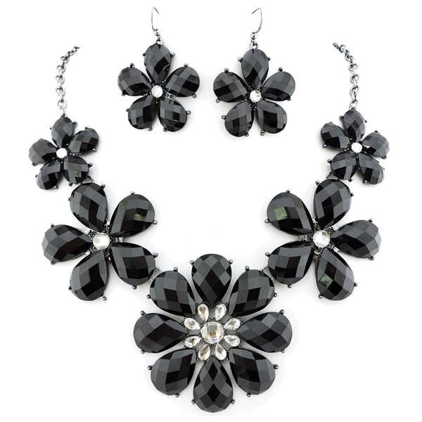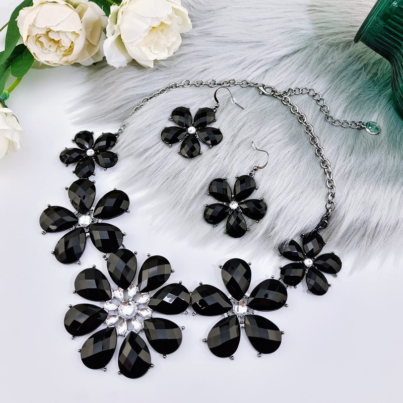 Firstmeet Shiny flower statement collar Necklace with earrings (XL-1104-Black)
