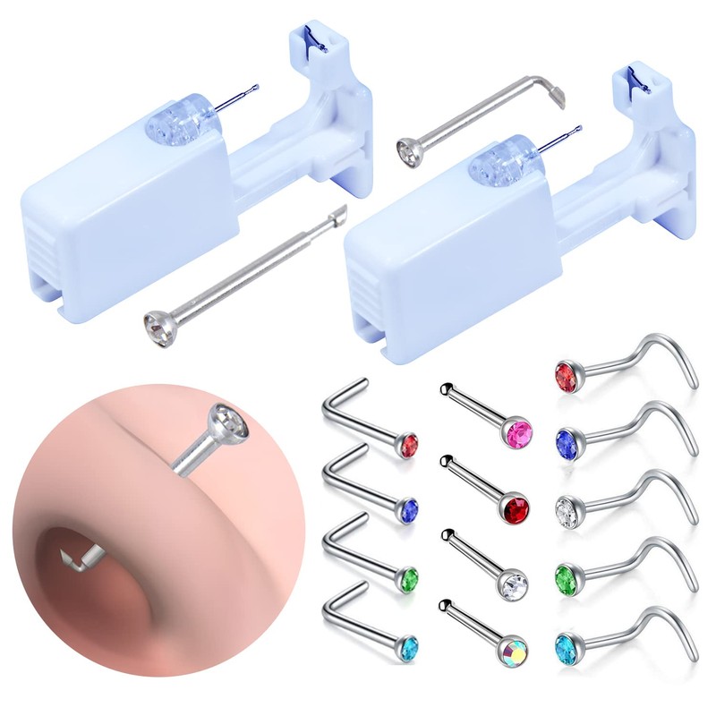 • 【Value Pack】- Medical blister package including 2 PCS individual packed nose piercing guns,5 years shelf life,2 alcohol pads and 13 pcs nose studs gifted