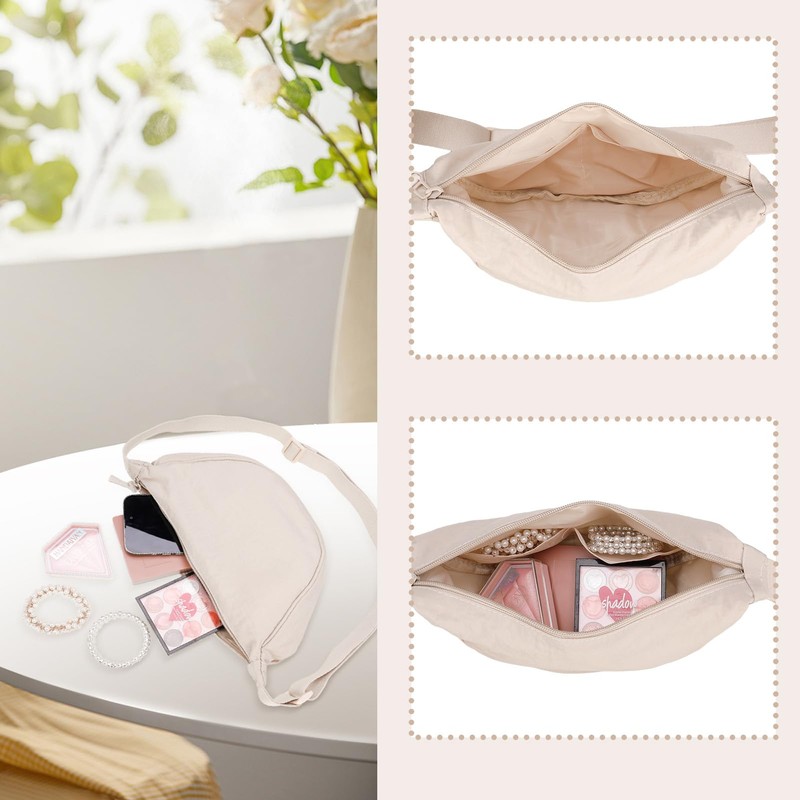 Firtink 2 Pack Crescent Bag for Women Men, Nylon Crescent Bags Dumpling Bag Hobos Crossbody Bags Purse with Adjustable Strap(Beige)
