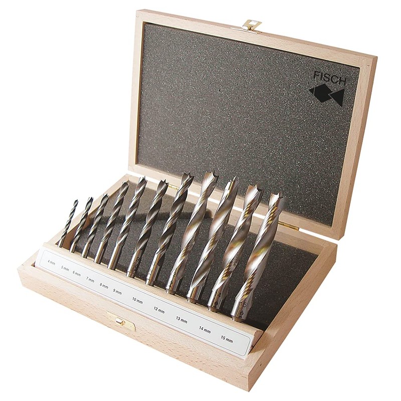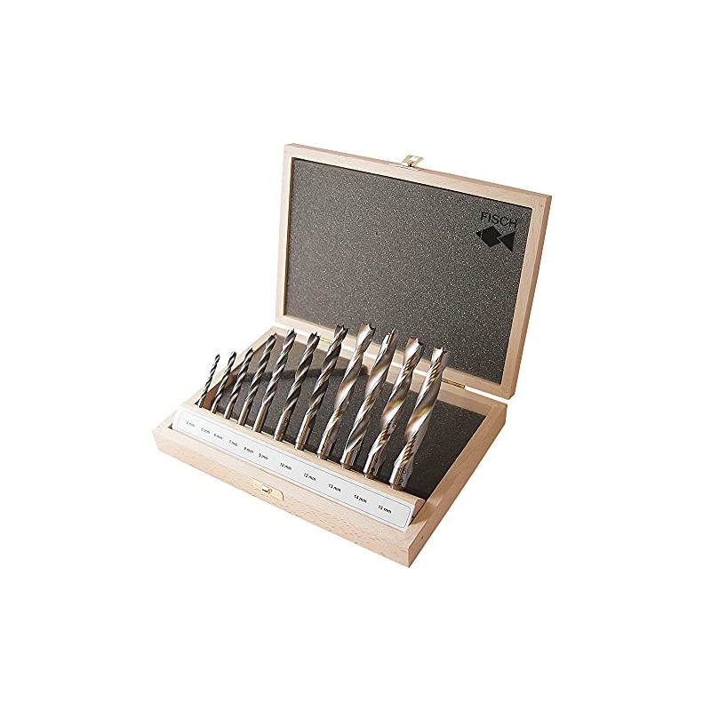 Fisch Brad Point Drill Bit Set, 11-Piece High Speed Steel Double Flute Wood Drill Bits, Sizes from 4mm to 15mm, FSF-305712