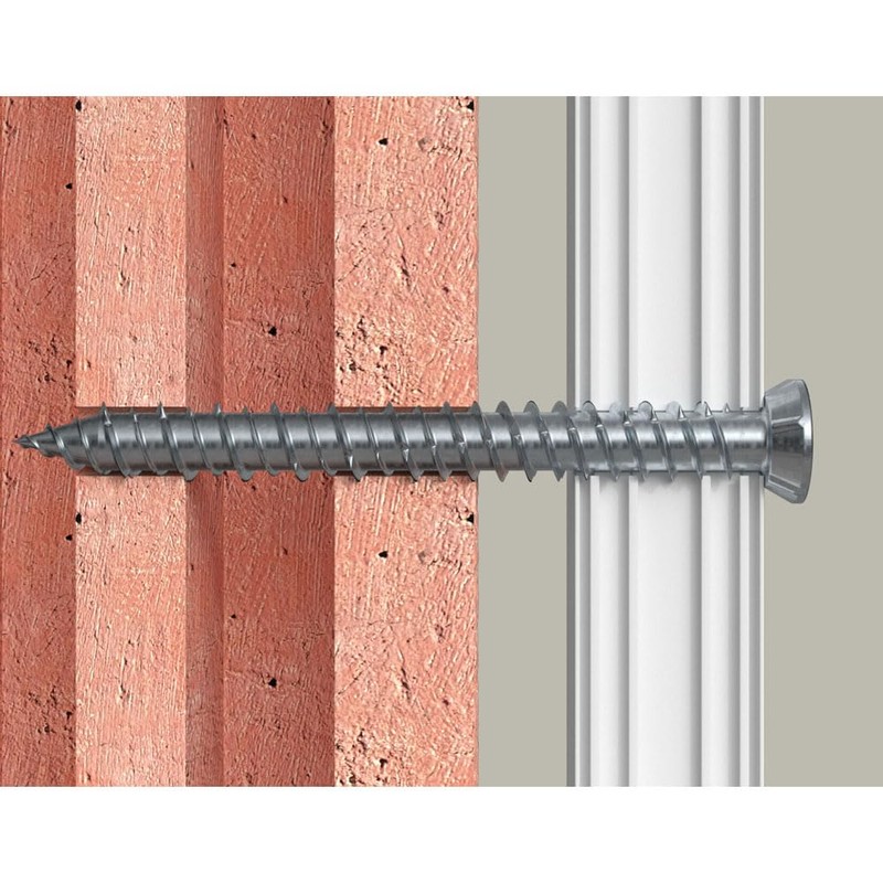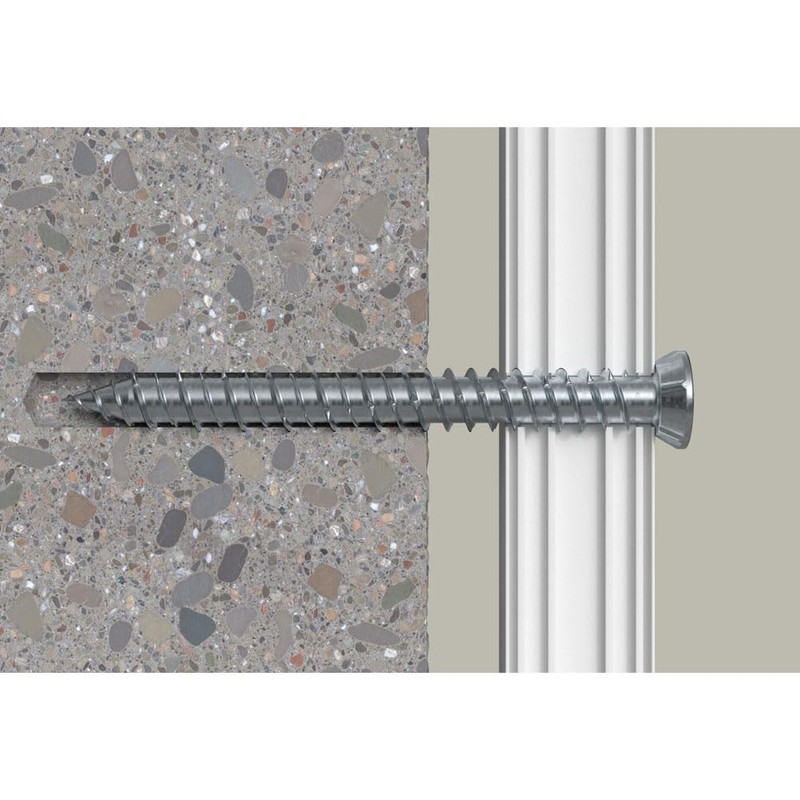 The fischer FFS window frame screw with flat head is a special screw for the economical installation of window frames. The screw can be screwed directly into solid and perforated building materials after drilling. The continuous special thread prevents the window frame from pulling against the surface. This means that it is tension-free and durable. Functionality / mounting borehole and screw-in depths for different building materials according to the table. Recommended for mounting plastic and aluminium profiles. For recessed mounting in wooden profiles, the cylinder head screw is recommended. Applications: window frame made of wood, plastic and aluminium, door frame, squared timber approvals 16-001605-PR03