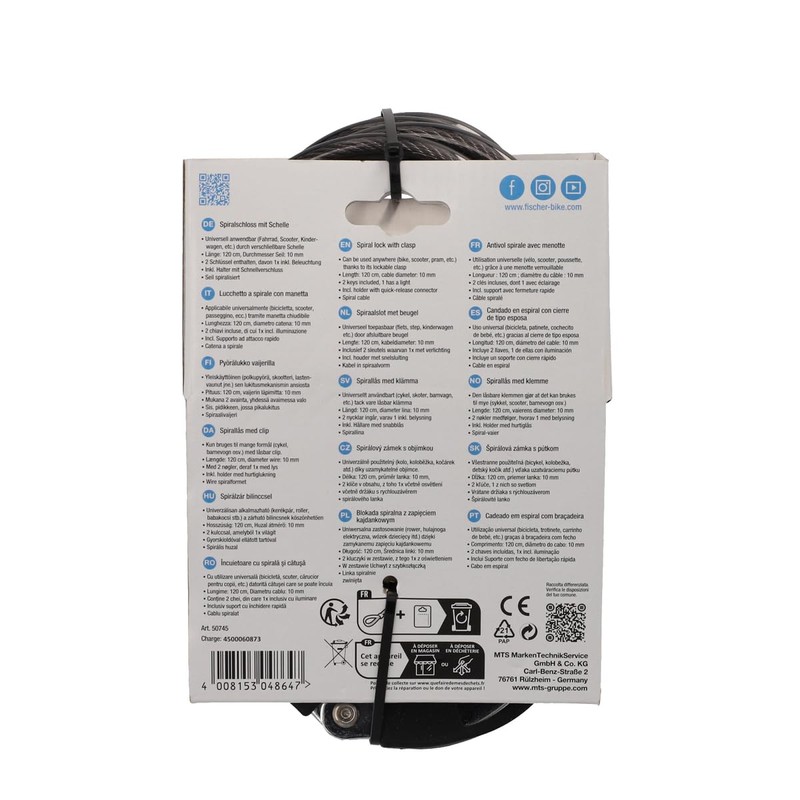 - Spiralised: the lock from Fischer spiralises and is therefore convenient and easy to transport