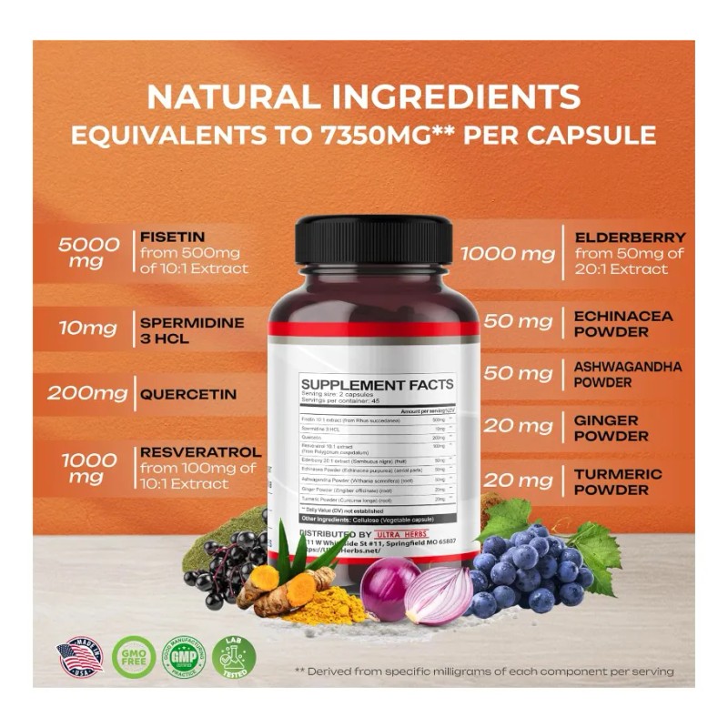 La fórmula 9 en 1 no solo aporta fisetina, sino que también incluye una sinergia de nutrientes cuidadosamente seleccionados 🌿 que fortalecen las defensas del cuerpo 🛡️, apoyan la energía celular 🔋, promueven el equilibrio inflamatorio ⚖️ y mejoran la resistencia frente al desgaste diario. Esta combinación potencia los efectos antiedad, logrando un suplemento mucho más completo que la fisetina sola.