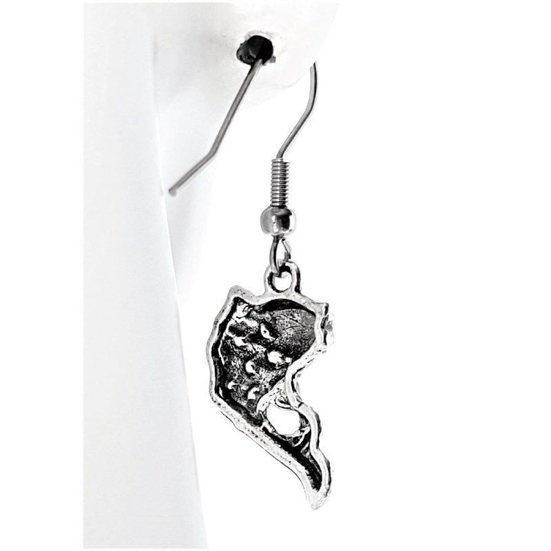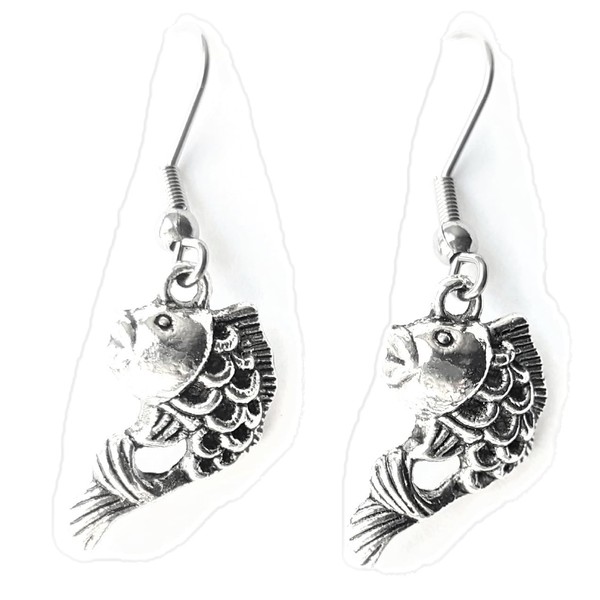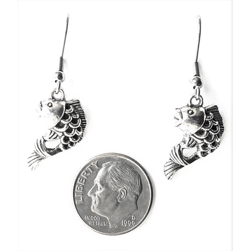 Fish – Curved – Open Spaces in Body - 20x13mm - Silver alloy charm dangle earrings. Hypoallergenic Stainless-Steel Fishhooks or Ball Post Earrings Optional