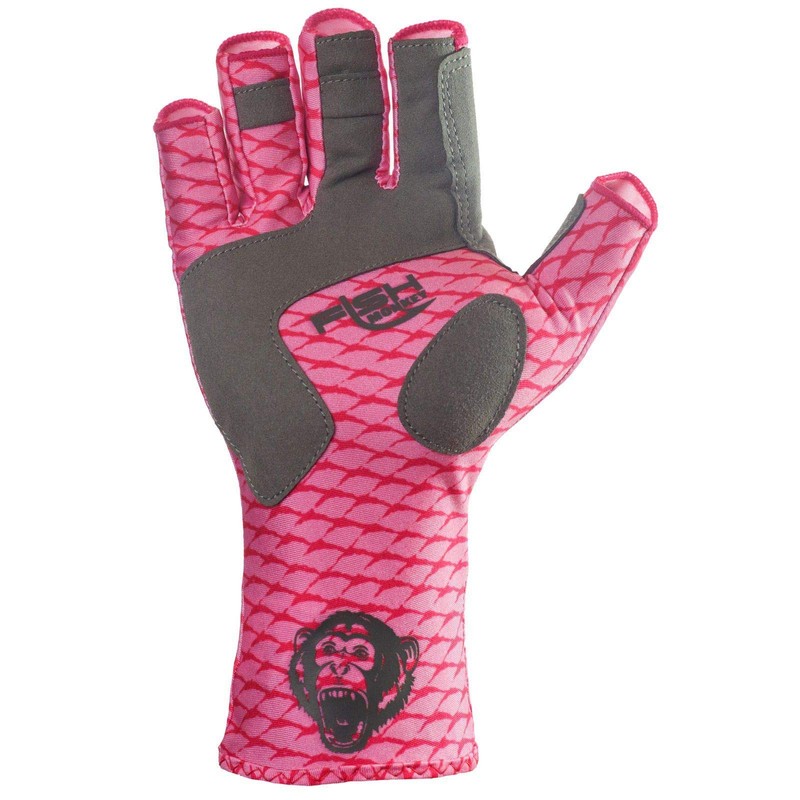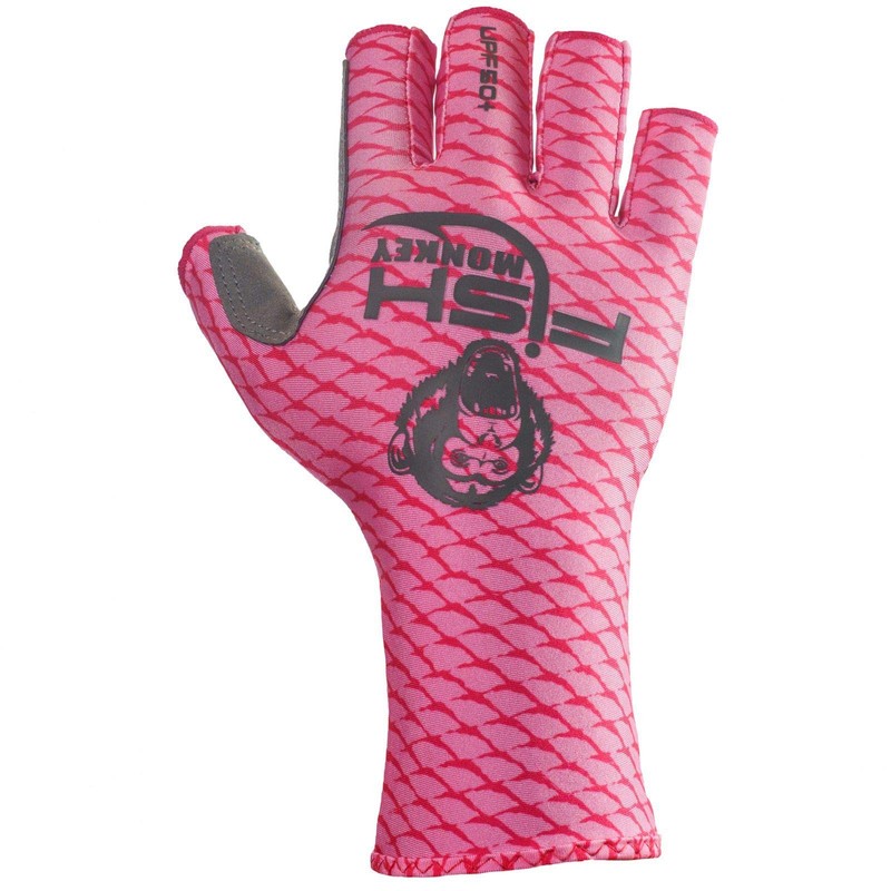 Fish Monkey FM11-PNKSCALE-L Half Finger Guide Glove Pink Scales L