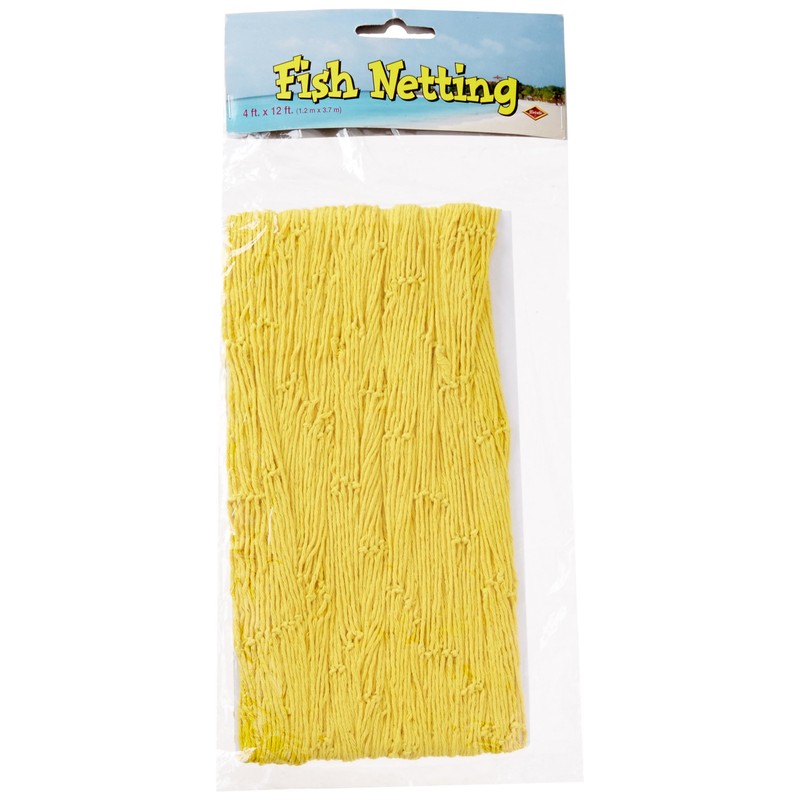 Beistle 50301-Y Fish Netting. This yellow fish netting measures 4 feet by 12 feet. Use it to decorate at a luau or nautical party. Hang around the ceilings or drape over tables for a great look!.