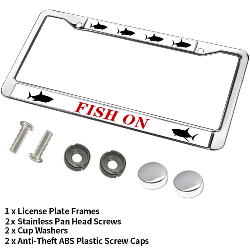Fish On Christ License Plate Frame Religious Jesus Saves Two-Hole License Plate Frame Christ is King Weather-Proof with Chrome Screw Caps