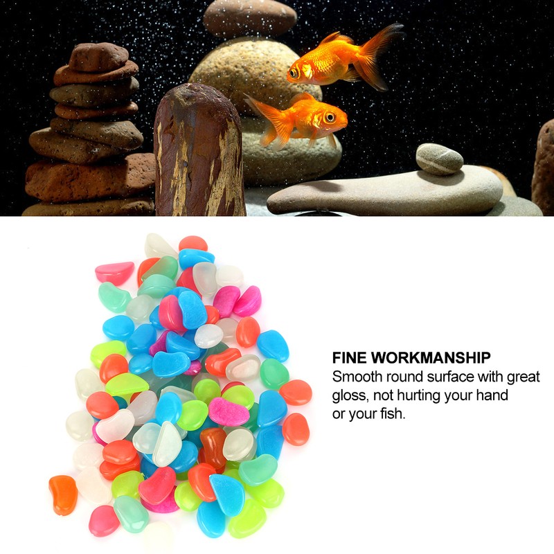 1、Fine workmanship, smooth round surface with great gloss, not hurting your hand or your fish. 2、Exposed the stones to the sun for about 30min, they can absorb any light source and glow at night. 3、You can freely decorate your fish tank with the luminous stones according to your preference. 4、Adopt environmentally friendly material and non-toxic, and you can use with confidence. 5、Colorful fluorescent pebbles for making your fish tank vivid and beautiful, easy to use.