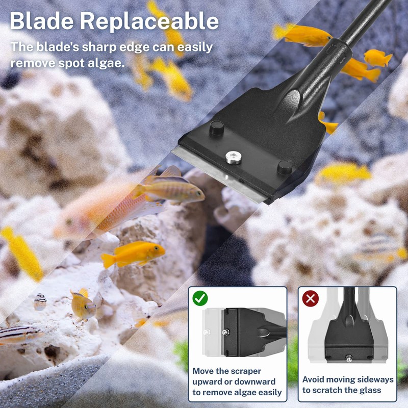 ✔Won't be able to scratch glass tank because stainless steel blade material is softer than glass actually.
