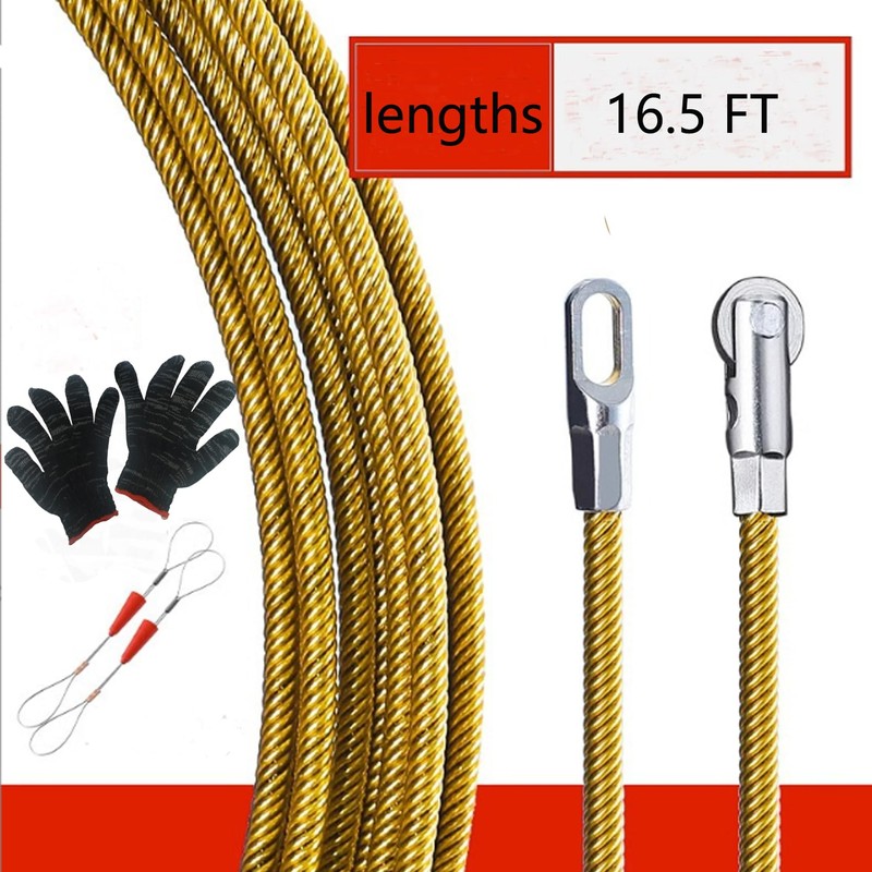 Fish Tape Wire Puller Fishing Sticks Cable Spring Electrical Equipment Tools, Wall Running Snake for Electricians (16.5FT(5meters) Spring)