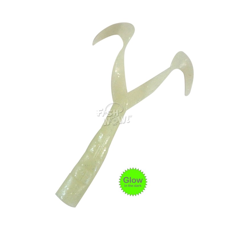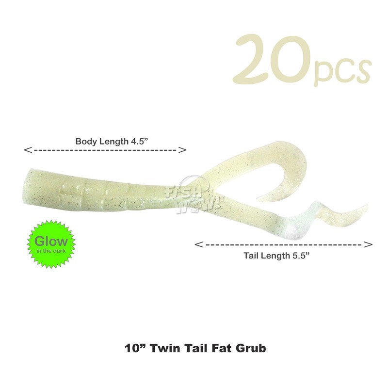 Fish WOW! 20pcs Glow 8 inch Twin Tail Perch Grub 10" (with Tail Extended) Scampi Soft Lure Come with a pre-Hole