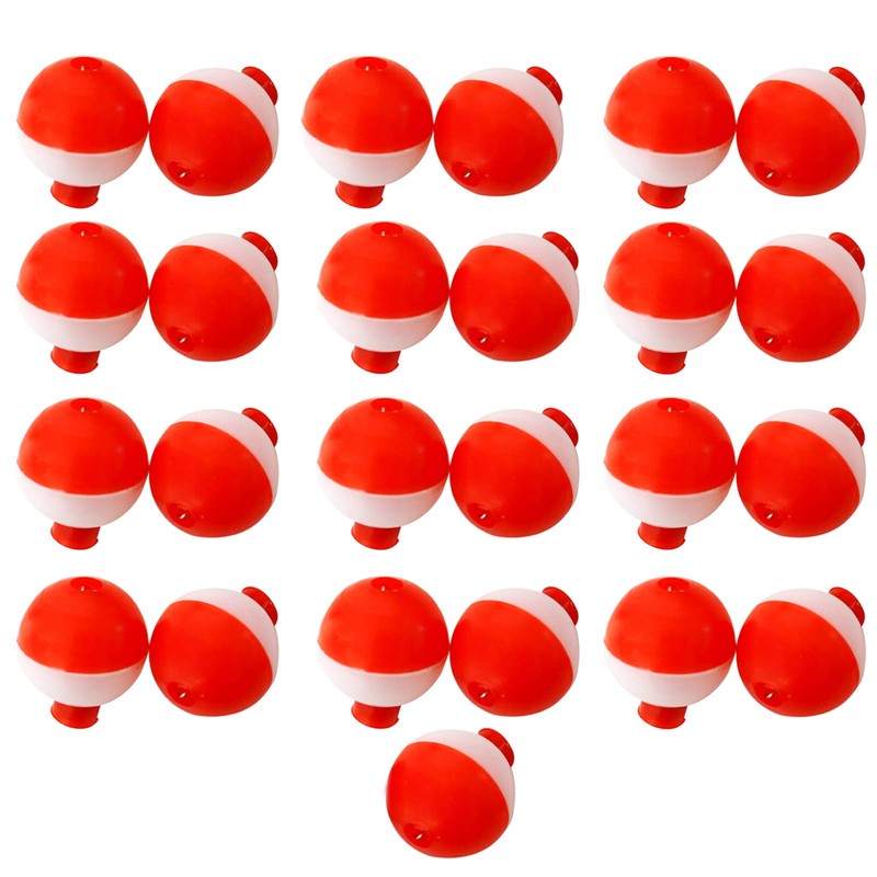 Fish WOW! 25pcs 1" Fishing Float Snap-On Round Floats Push Button Float Bobbers Red White