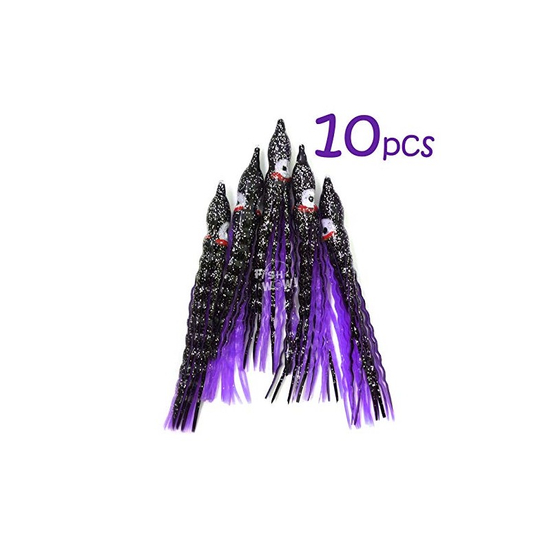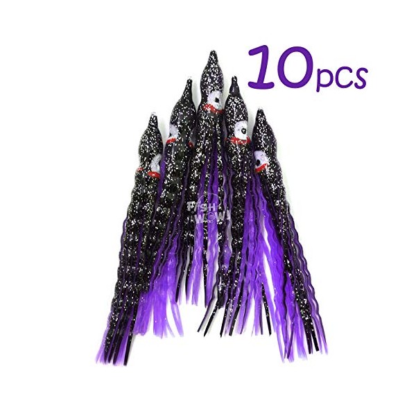 Fish WOW! Qty 10 Purple Black 5" Squid Skirts 13cm Crinkle Hoochies Wavy Octopus Skirts Fishing Soft Trolling Lures Indigo Violet