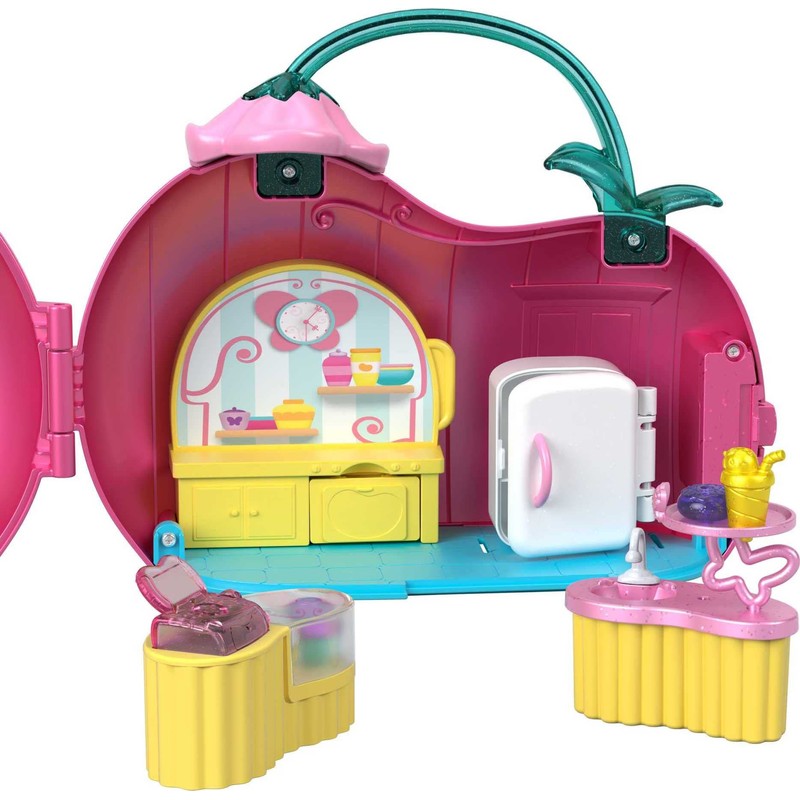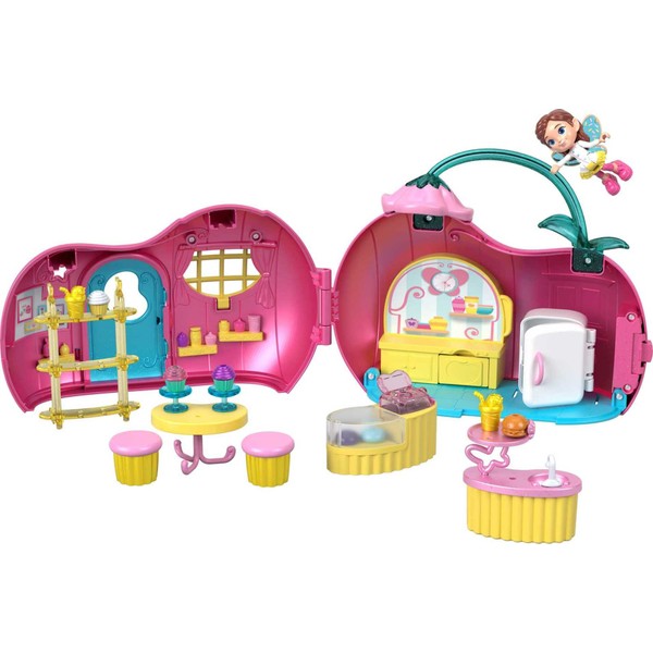 - Open the bean-shaped playset to discover two sides, one for cooking up sweet treats and another for café-play.