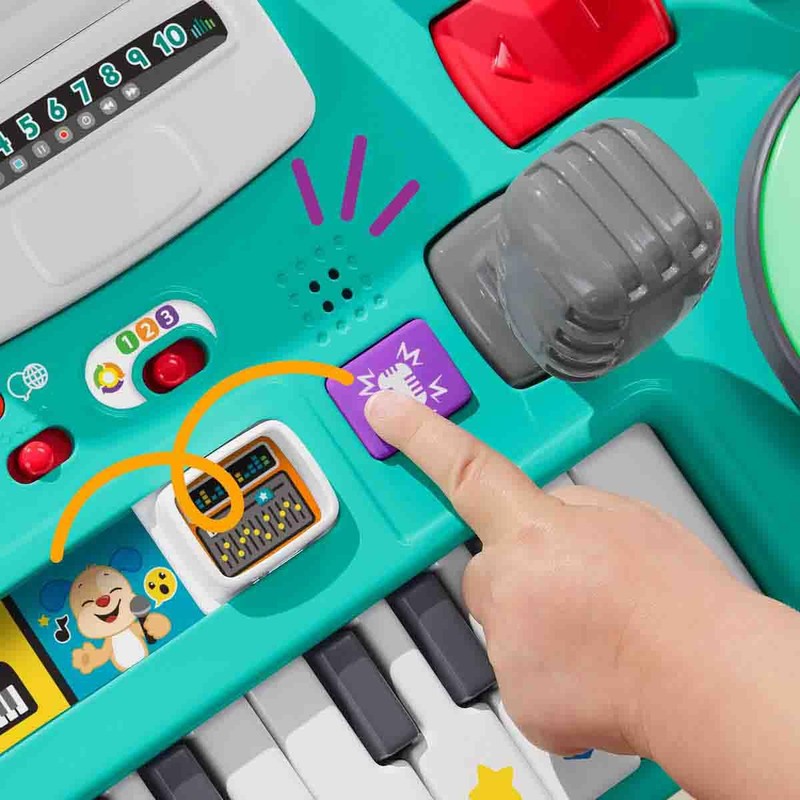 • 3 piano playback modes, multi-coloured lights and 12 engineering fine motor activities on the music-themed activity table for baby and toddlers DJs to explore