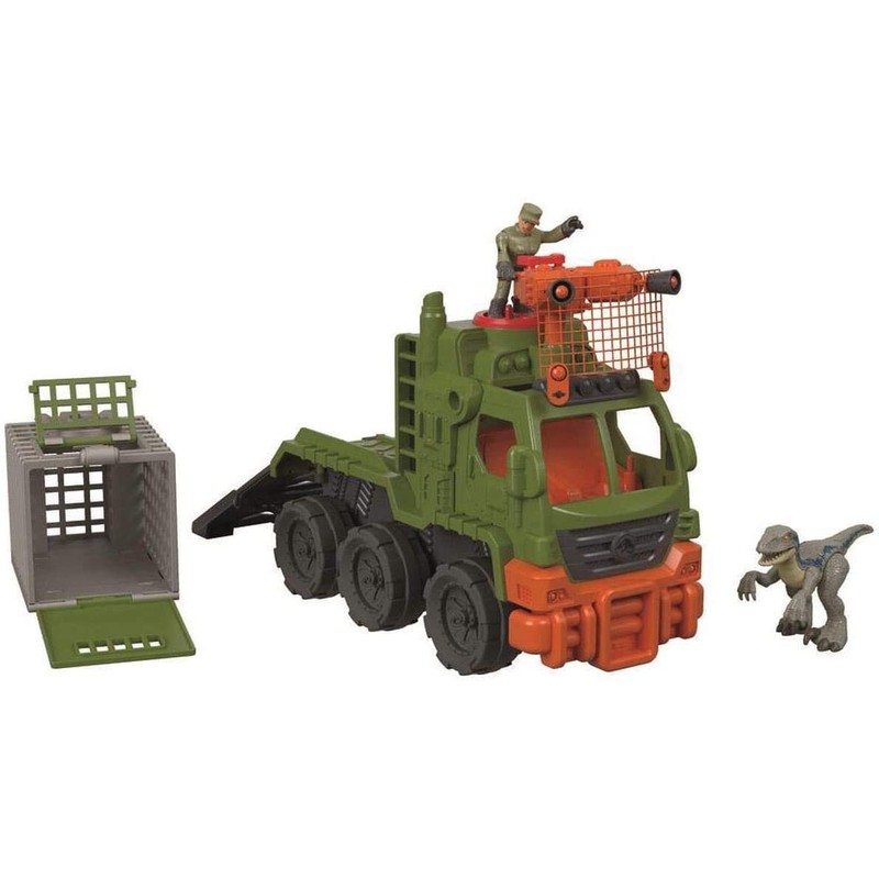 Preschool kids can create their own Jurassic World adventures with this vehicle and figure set from Fisher-Price. Dinosaurs are on the loose! The Asset Containment Unit (ACU) races into action with the fully loaded dinosaur hauler vehicle. A slight turn of the Power Pad lowers the ramp, and a full turn ejects the cage. With Blue the raptor in sight, launch the net projectile to catch her and haul her into the cage. But be careful—one wrong step and the agent could fall in, too! Imaginext Imagine What’s Next!