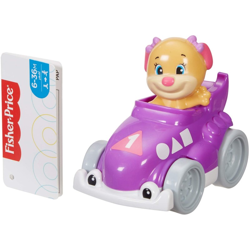 Let's roll, baby! This adorable vehicle is perfectly sized for tiny hands to grasp and roll, sending Sis zooming here, there, and everywhere! Add Puppy and Monkey for even more racing fun! (Additional vehicles sold separately.) Where development comes into play Fine Motor: Little ones can strengthen dexterity and hand-eye coordination as they grasp and move the speedster. Curiosity & Wonder: Your baby will love discovering how to get Sis rolling!