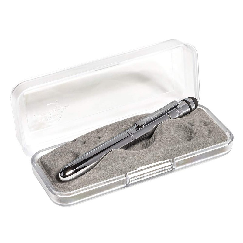 From the maker of the pen that went to the moon and still used on all manned space flights; comes the new Bullet Grip Stylus Space Pen with clip . This particular pen features a silicon rubber conductive stylus that is ideal for touch screen cellular smart phones and tablets. The patented ink cartridge was designed by Paul Fisher for NASA in the 1960's enabling it to write in temperatures from -30 to +250 degrees Fahrenheit, under water, in zero gravity, at any angle, even upside down.