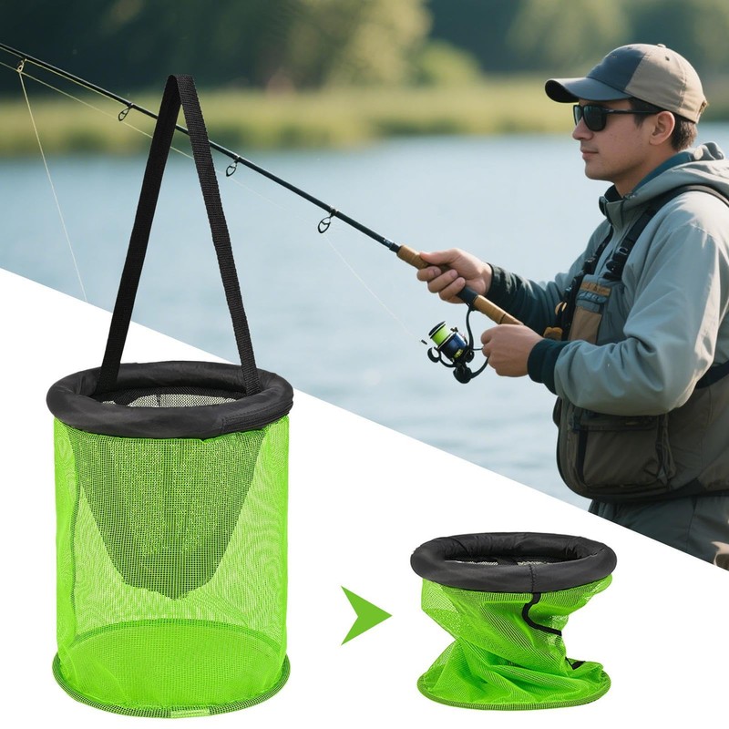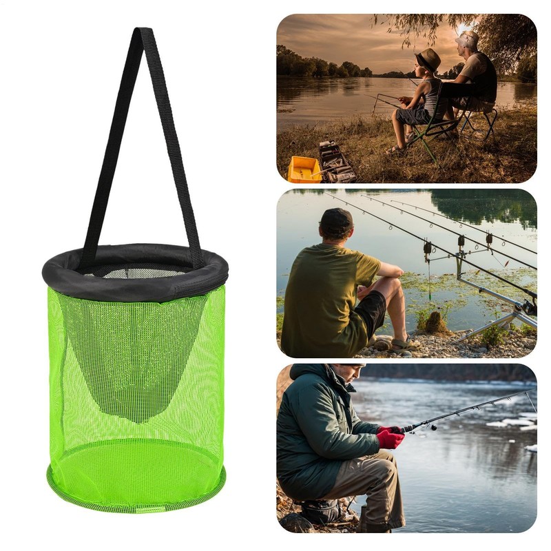 The Fish Basket is designed for outdoor enthusiasts who enjoy portable fishing gear. Made with a durable mesh material and featuring a drawstring closure, it ensures secure storage for your catch. Ideal for crayfish and catfish, this bucket is perfect for camping trips or various fishing activities such as fly fishing, ice fishing, and kayak fishing.