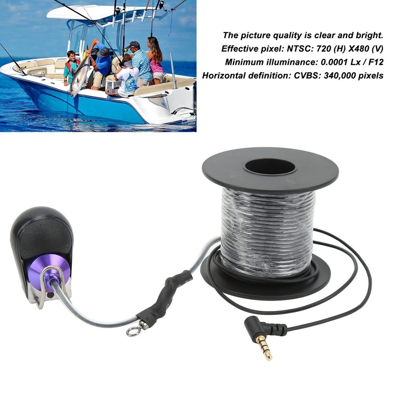 - Main function: fishing camera effective pixels for NTSC: 720 (H) x 480 (V), minimum illumination of 0.0001 Lx/F12, horizontal resolution CVBS: 340,000 pixels. The underwater fishing camera has a fishing line that is long enough to be used in a variety of fishing activities.