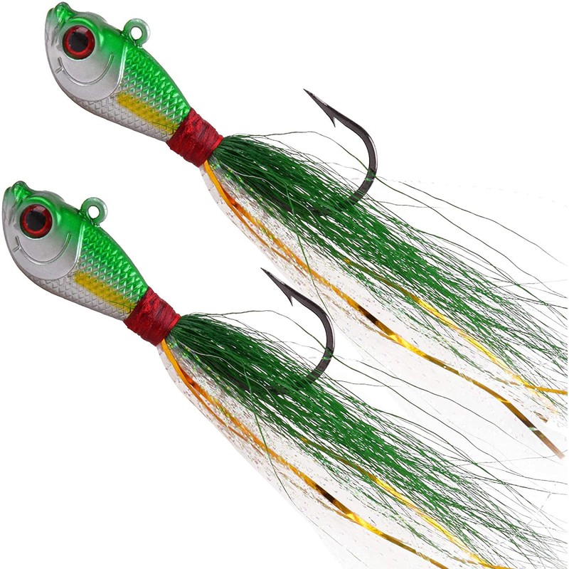 - PREMIUM MADE - Bucktail made of quality material, provides realistic glides-through and swim-along action in water, set this jig from those cheap products who hang straight down after hitting water