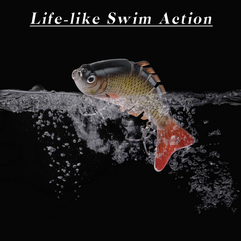 - HIGH SIMULATION: Fishing Lures with 3D realistic looking eyes and durable textile fabric and vivid pattern, this swimbait appears very delicate and vivid that looks like a real fish. A perfect fishing bait that easily cheats the target fishes.