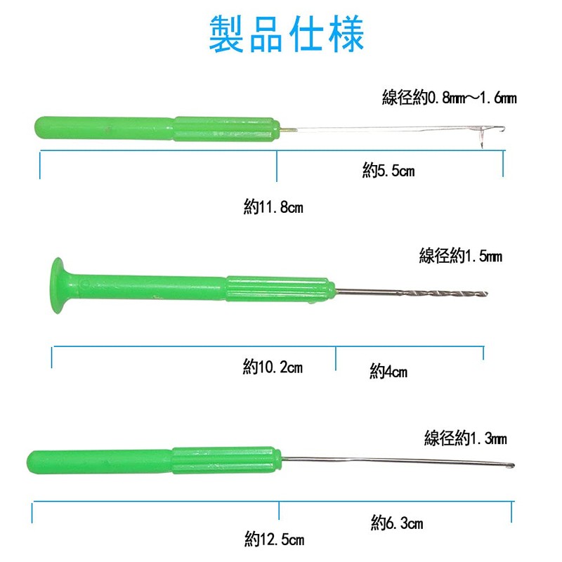Fishing Needle, Boily, Carp Fishing, Self-made, Quick Replacement, Assisted Needle, Drill Needle, Hook Removal, Line Loop, 3-Piece Set, Handle, Green