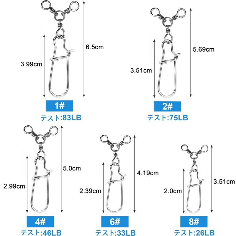 Fishing Quick Snap High Strength Tri-Finger Swivels Pack of 25 3-Way Snap Swivels with Snaps for Fishing Tackle Rigging 5 Sizes Available 26-83lb 4#