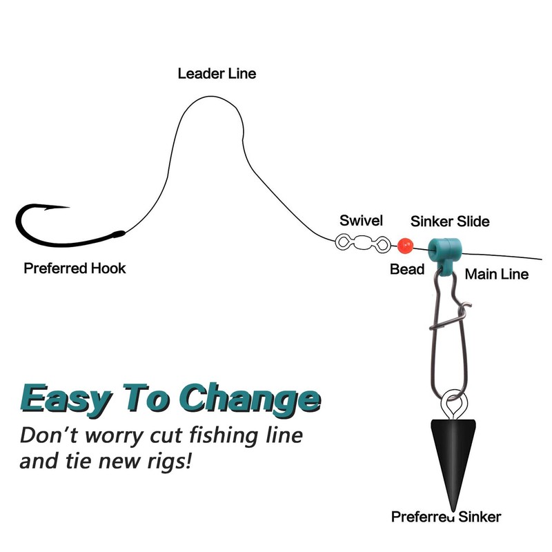 - 【FUNCTIONS】Change weights size or take sinkers off more easily and quickly without having to cut your fishing line and tie new rigs, and fishing line sinker sliders are designed to detect the slightest bite.